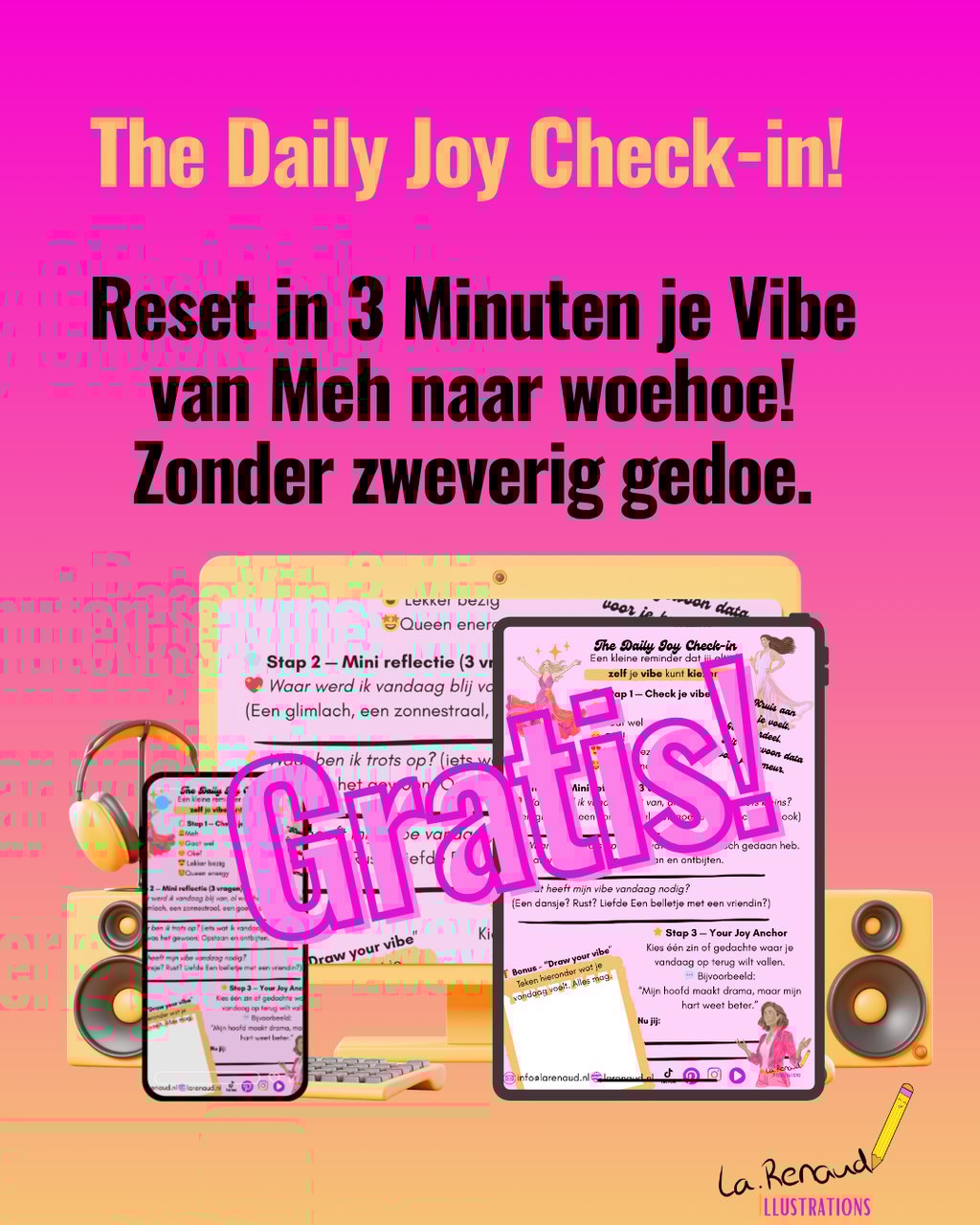 Hi, ik ben Laurette Renaud , Dé mindset tekenaar & maker van JoyfulMind Tools.